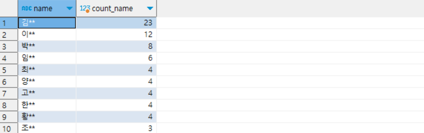 users 테이블과 orders 테이블을 사용하여 네이버 이메일을 사용하는 유저의 성씨별 주문건수를 조회하고 정렬하였다.