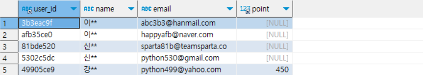 이너조인과 마찬가지로 users와 point_users 테이블의 user_id라는 컬럼을 기준으로 레프트조인을 적용하였다.