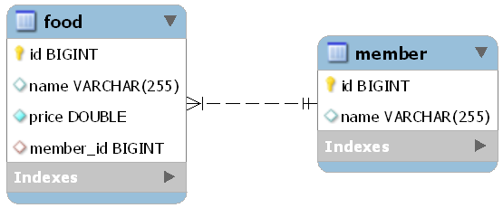 - Food Entity는 Food.member 필드를 통해 음식을 주문한 고객(Member Entity)에 접근할 수 있다.